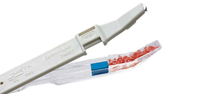 Easy to use, Safescraper® TWIST makes autologous bone always available in any condition, both for small and large harvests.