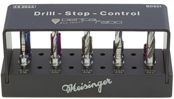 The DRILL-STOP-CONTROL system is used for safe preparation of the implant site using coordinated twist drills with defined diameters and lengths, in combination with a color-coded depth stops.